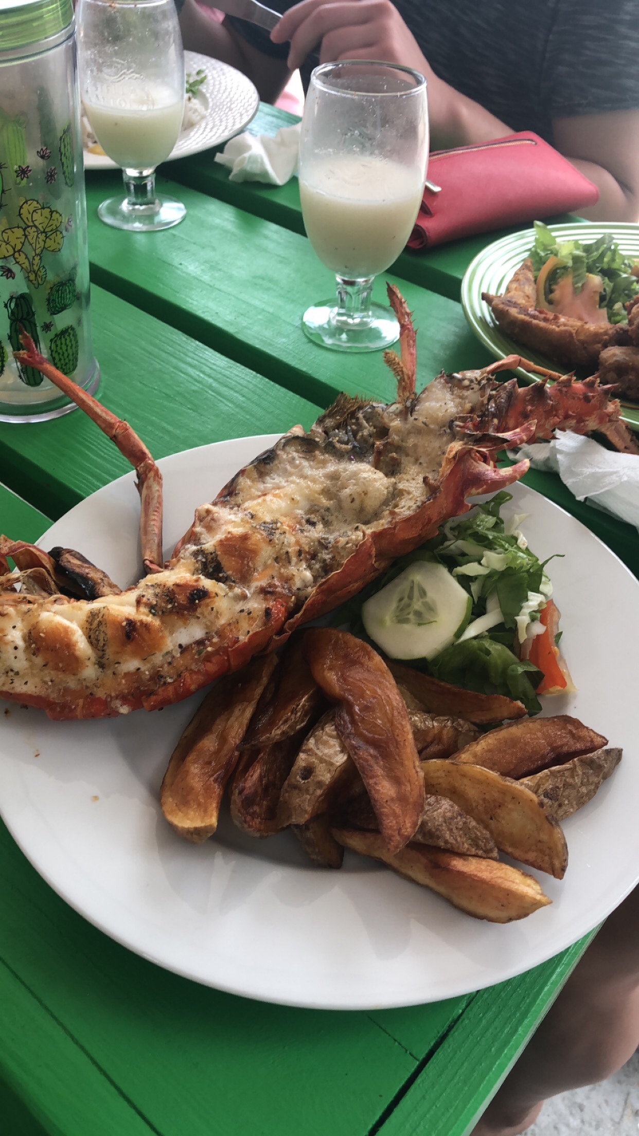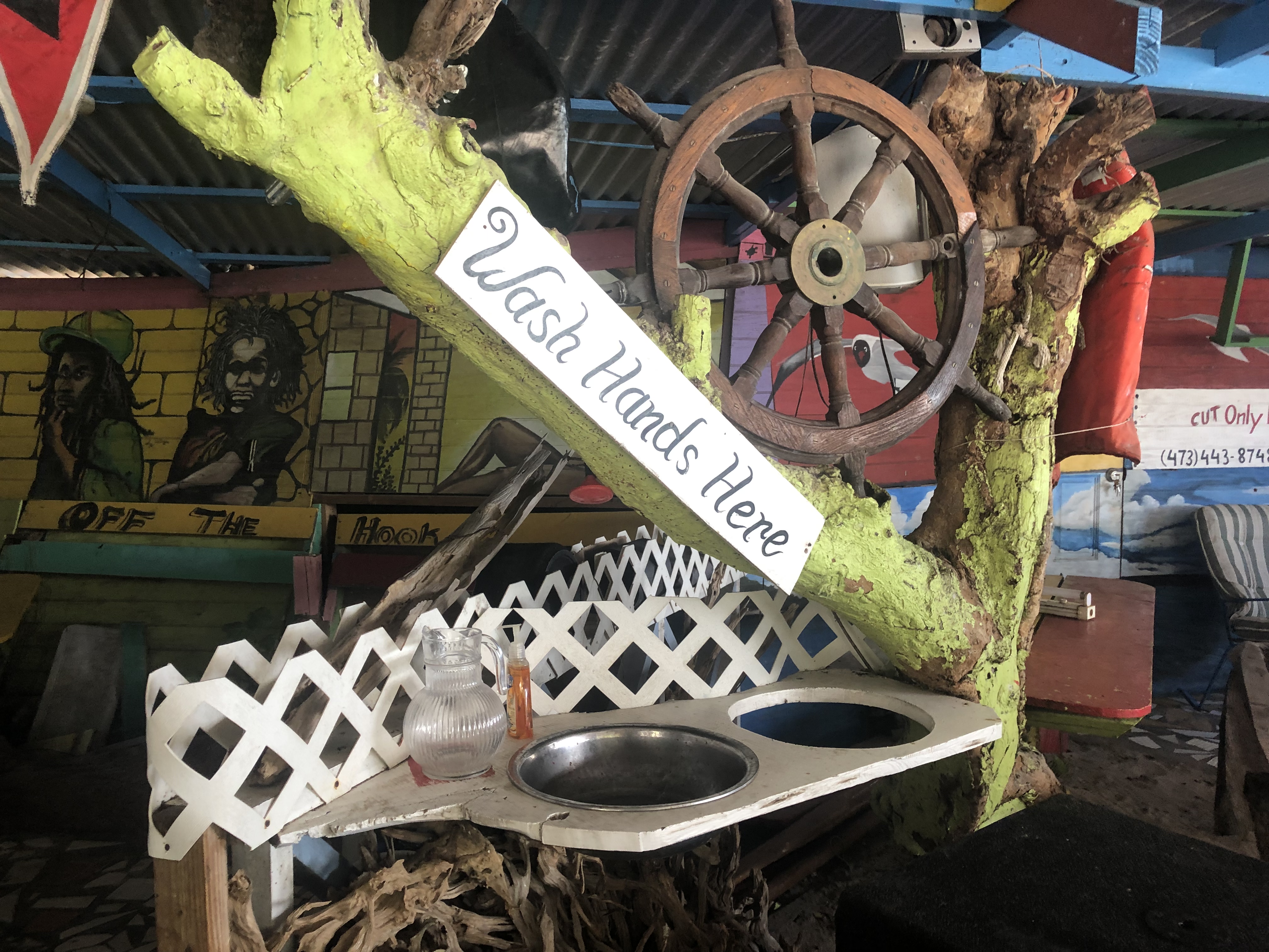 When we arrived, we were not required to show our passports. We hopped off and took a taxi to our hotel, Carriacou Grand View (link and picture posted below). By this time, we were all starving. When we got to the hotel, we were informed that you have to make reservations for lunch, so we had to get food elsewhere. Our taxi driver took us to Off the Hook Bar & Grill, which is a part of Paradise Beach. I had lobster, that was really delicious, but it took them about 2-3 hours to prepare food for the 10 of us. I don’t know how many of you have heard of “island time” but it is a real thing. And I thought it was bad on Grenada, but then I went to Carriacou. Pretty much everywhere you go in Carriacou, will take about 30 min to an hour to get you a drink. If I went back, I would def bring my beverages and lots of snacks. Besides that, the island was beautiful. Very similar to Grenada, but less developed, less wi-fi, less people. For example, check out the “wash hands here” station pictured below, where you literally had to pour water with a pitcher to wash your hands. Nonetheless, we were grateful to eat our lobster with clean fingers!