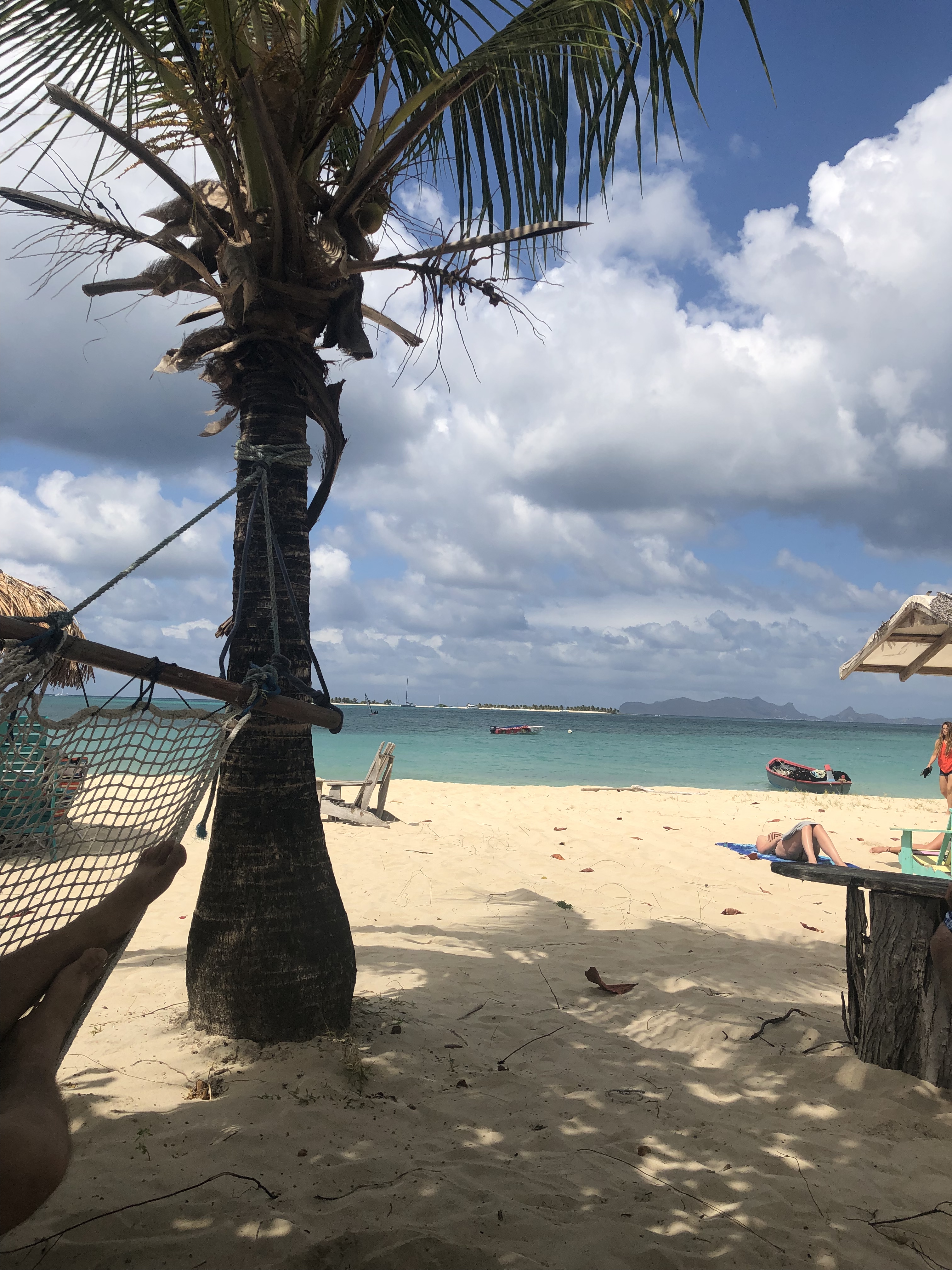 After eating our lunches, a group of us decided to take a small boat and go check out Sandy Island. I was most excited for this part of the trip. Sandy Island was the recommendation that other Caribbean students said was worth checking out. It did not disappoint. It’s close to paradise beach, and some of our group members even kayaked there (you can rent from Off the Hook). The island is less than a mile long, but it was beautiful and untouched. If you are going to stay out there for a while, bring plenty of water and snacks. There were two different places to buy food and drinks. We were still hungry, so we ordered some plantains and baked potatoes from the first shop we found. While we were waiting on our food, with a rum punch in hand, we explored the island. It was so peaceful and beautiful. There were also several ships that will set up for the night and hang out at Sandy island. This picture is from google, but this picture helps you get a feel for how tiny this island is.