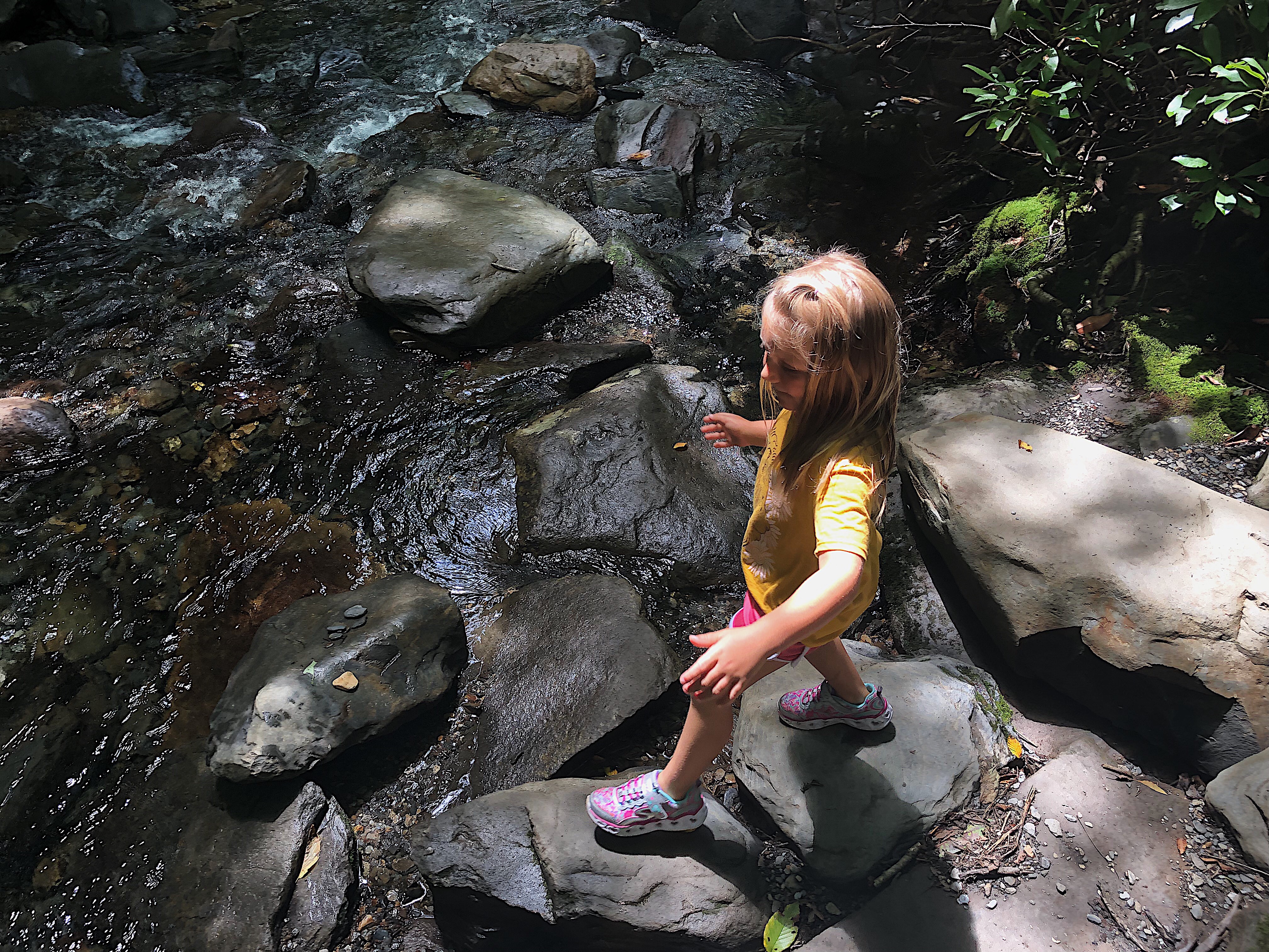 About a mile and half in, Harper had to pee. Of course, there wasn’t a toilet in sight. So, I got nominated to teach the 5 year old girl how to pee in the wild… I chose to do so by demonstrating, while my mother stood watch. The code words for someone coming was, “Mace, I sure would love some Salsa.” And of course, we had to use the code words twice lol. Anyways, I drop my drawers, and squat and try to get Harper to do the same. Her stance wasn’t the greatest, but I figured it would work. Mid-stream, she decides to stand up. Needless to say, her shorts were saturated in her urine lol. After she used her shirt to wipe (I didn’t teach her this, she was just too quick for me to stop her lol) I helped her pull up her wet shorts. She was not happy. She kept pulling down her pants while hiking, so we had to give her bath in the stream and “wash” her clothes. It was honestly so funny. Hopefully, her next time peeing in the wild, will be a much “drier” experience.
