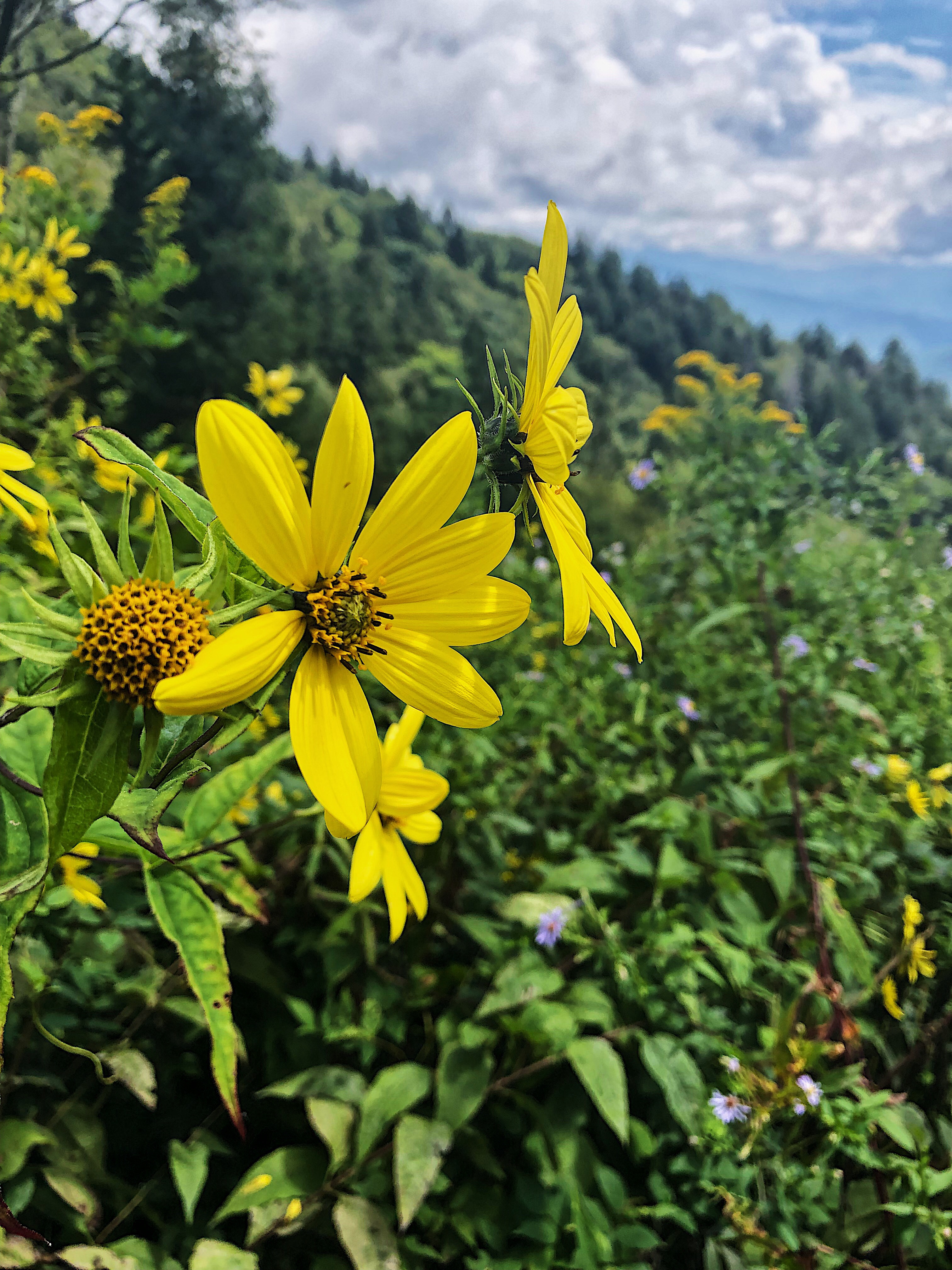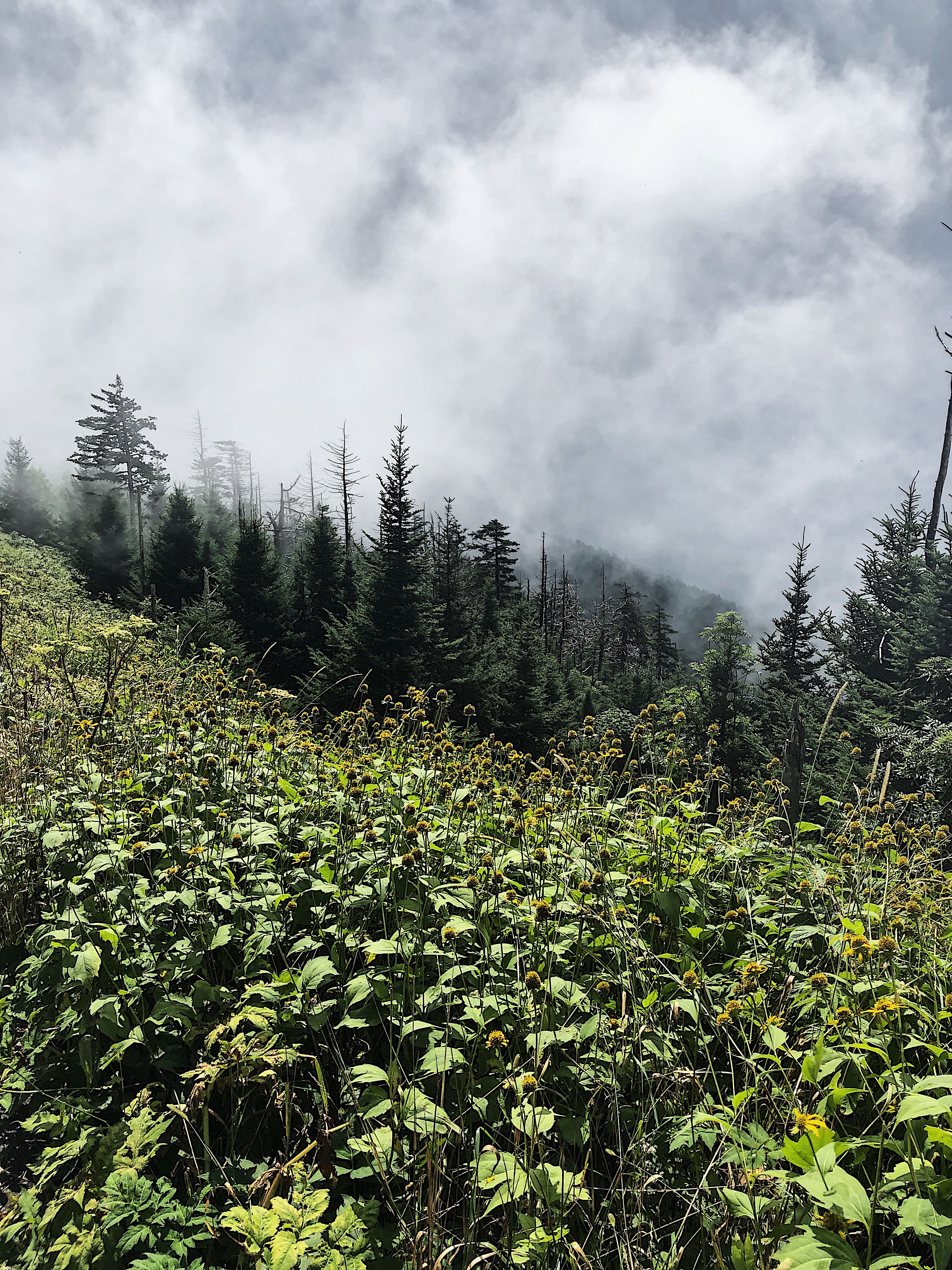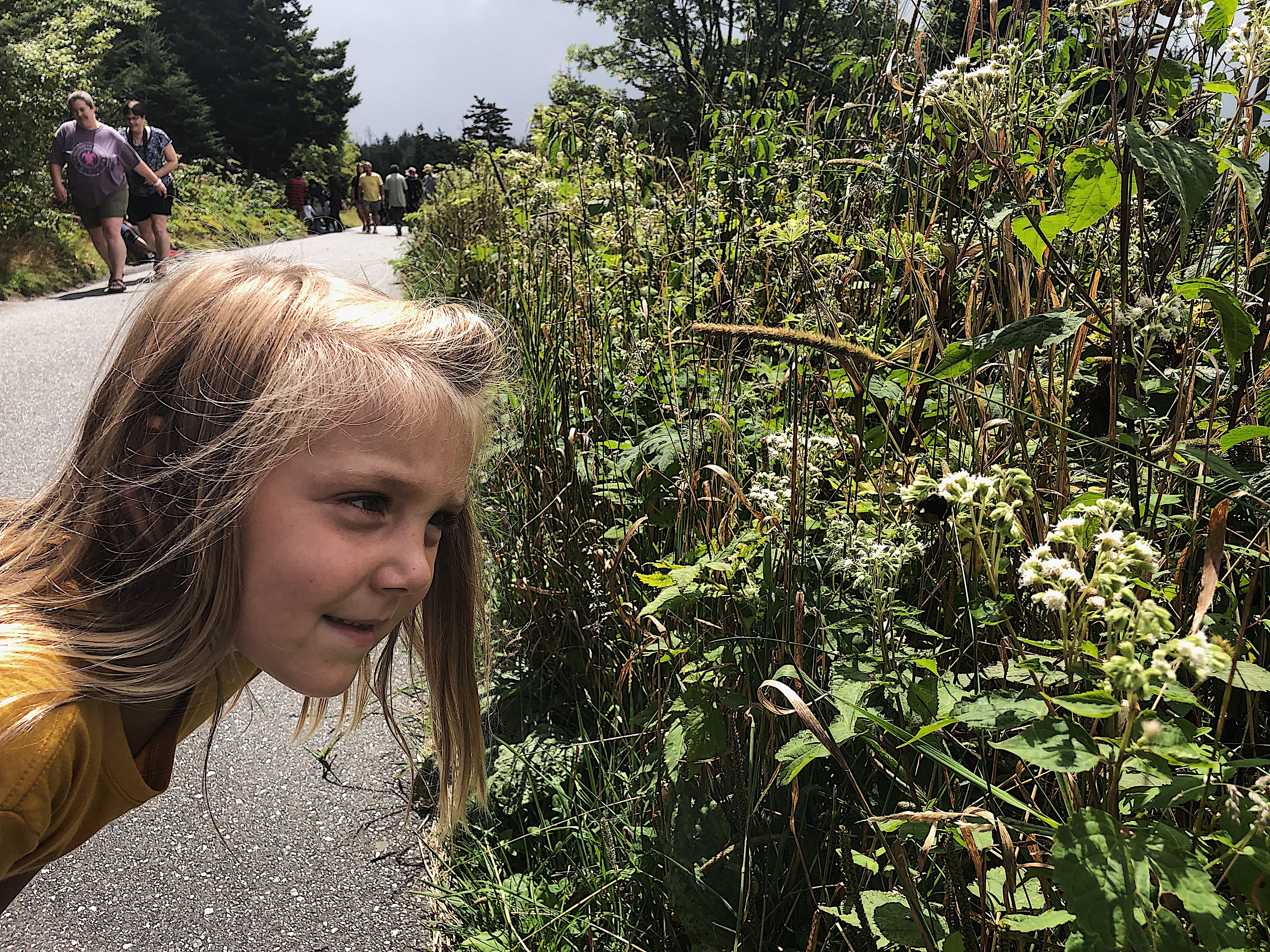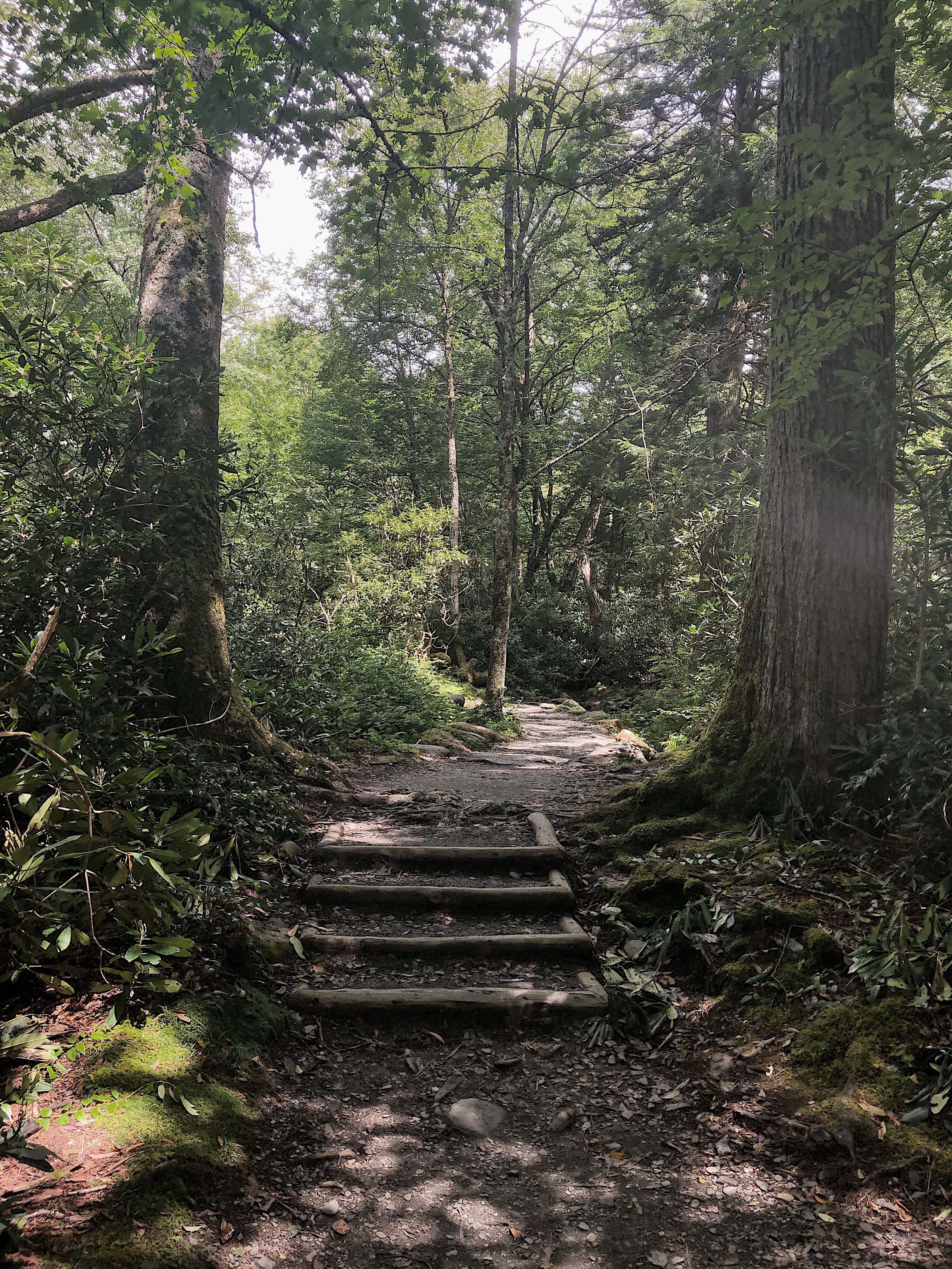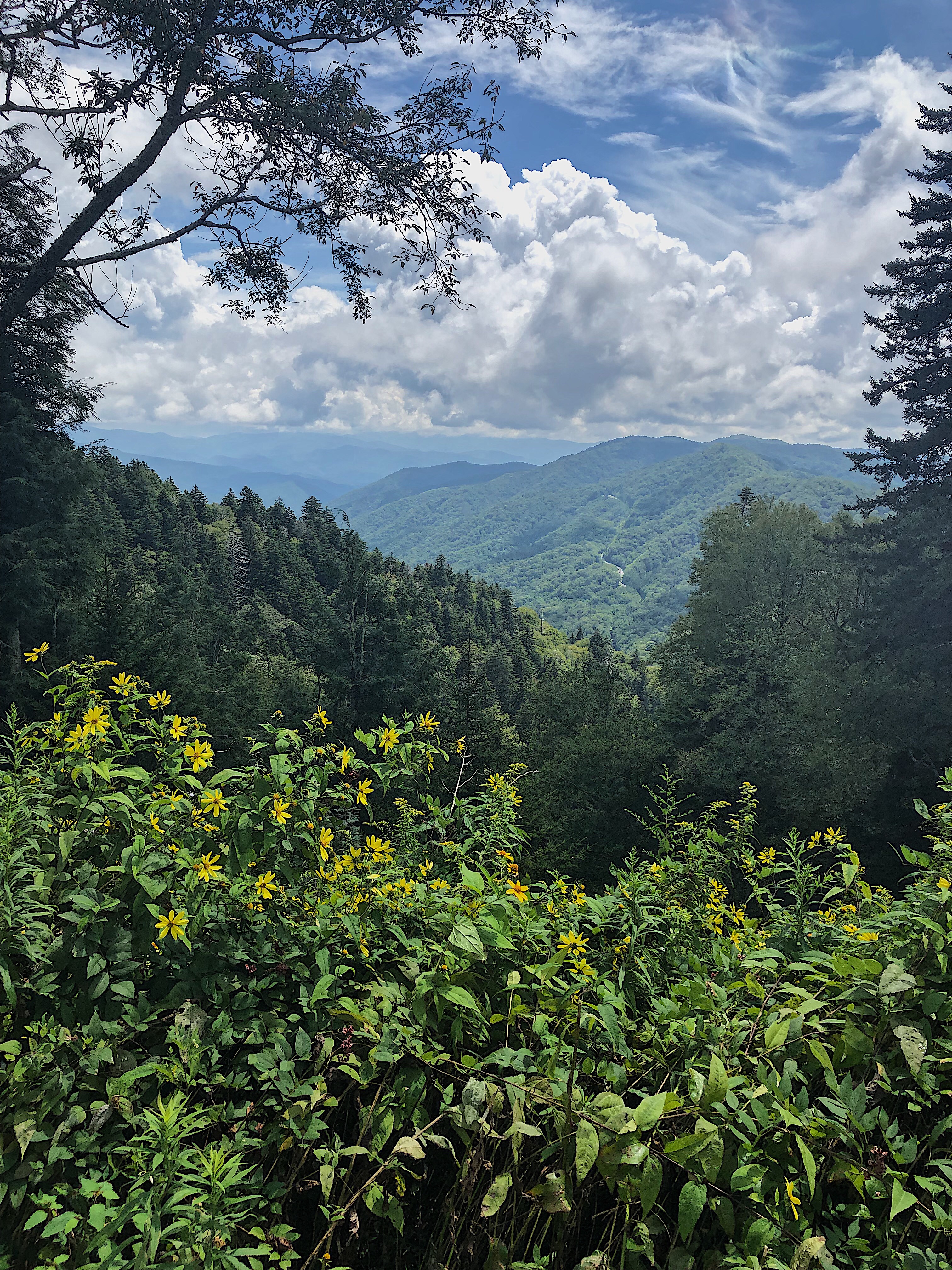 On the way up, we saw an abundance of bees in all the beautiful flowers. It was lovely. When we finally made it to the top, the clouds started to clear. The pictures we got from this point, could never do it justice. We all used cell phones for our pictures, but in real life, you just have to see it. It’s a 360 view of the smoky mountains and it is a must do.