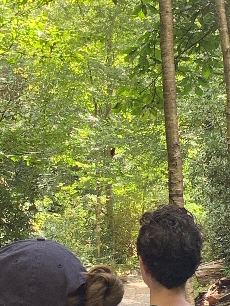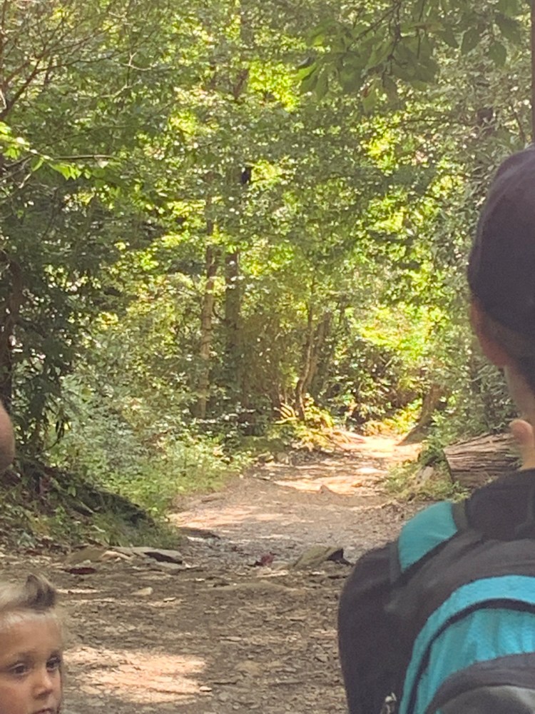 On our way back, Harper and I looked for fungi, and we found them, and a slug! This hike is so beautiful, I definitely want to go back and do more of it! We started to smell that musky scent again, and before I knew it my mother’s hand was in my face and her finger over her mouth singling us to be quiet. What lies beyond the corner? Not one bear, but FOUR BEARS!!! It was a momma with 3 cubs. One cub was stuck high in a tree, crying, while the momma bear circled the tree. She got out of our sight, and humans started to accumulate in our area, as we waited. Harper was so excited. There were two humans headed toward us from the parking area, and we were all yelling “bear!”, but they didn’t hear us. Thankfully, they didn’t see the bear and the bear didn’t come out!